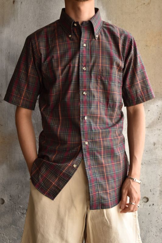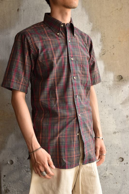 60's-70's S/S madras check shirt -deadstock-