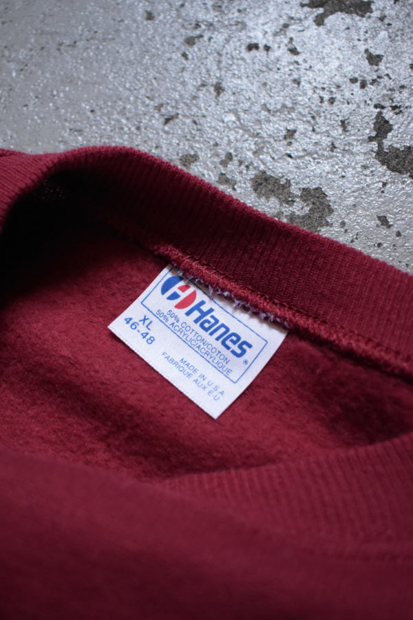 褪せた赤ボディの綿ポリ混紡素材のスウェットで、程よい厚みが特徴的なアイテムです。