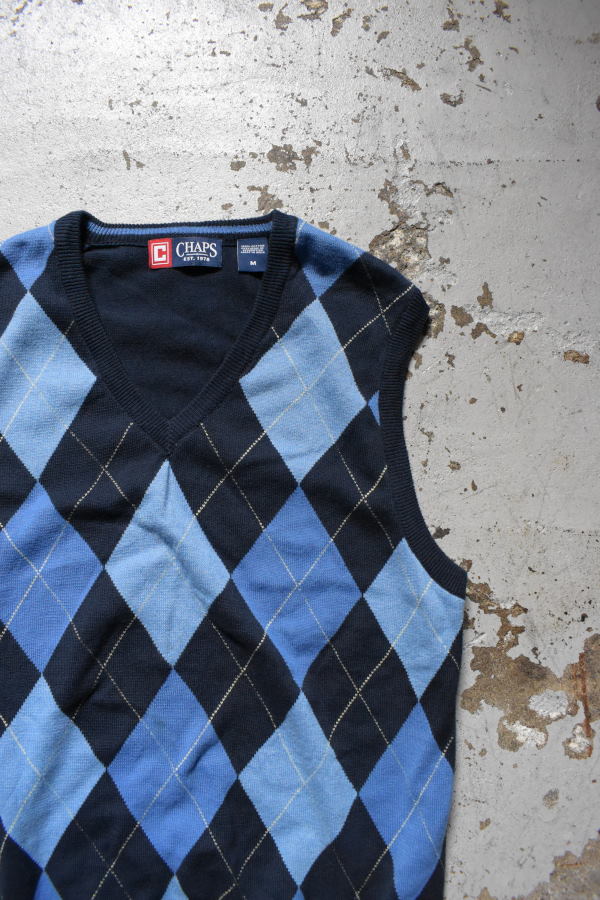 ネイビーベースのアーガイルパターンが目を惹く一着。