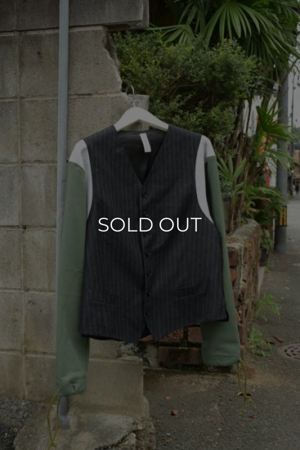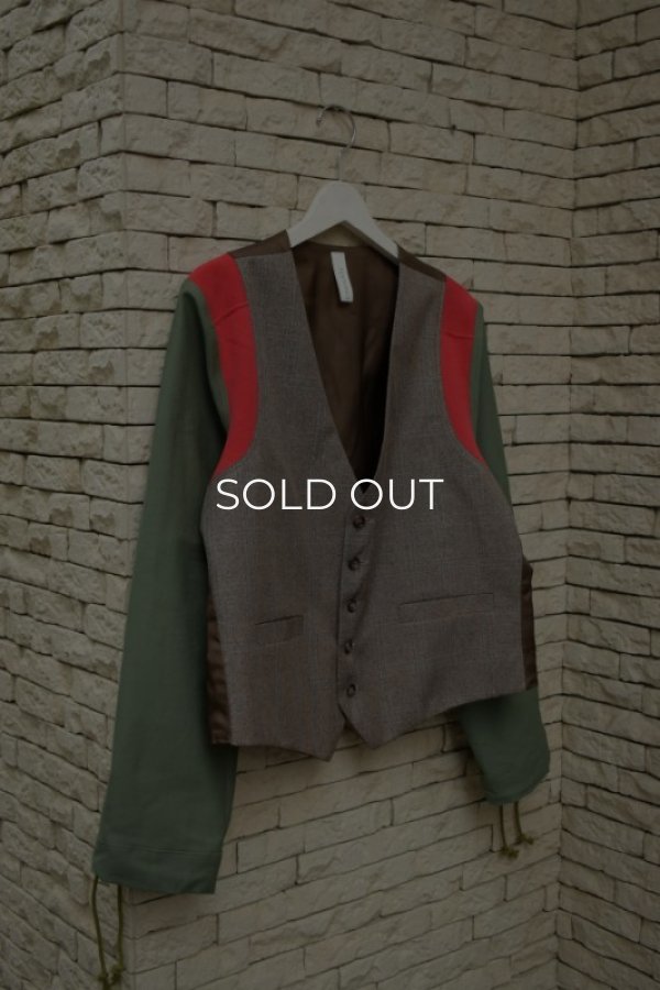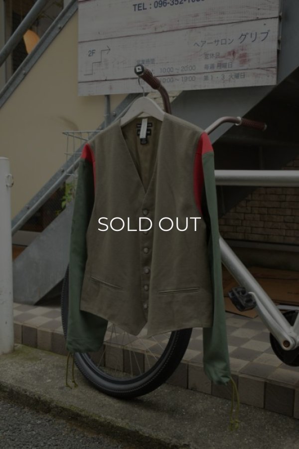 ショルダー切り替え部分にはChampionのREVERSE WEAVEの残布をジレの色味に合わせて、