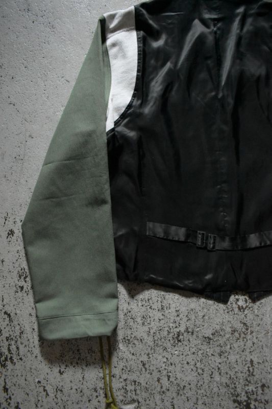 ショルダー切り替え部分にはChampionのREVERSE WEAVEの残布をジレの色味に合わせて、