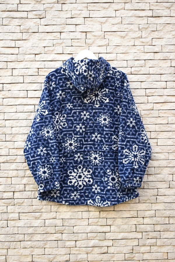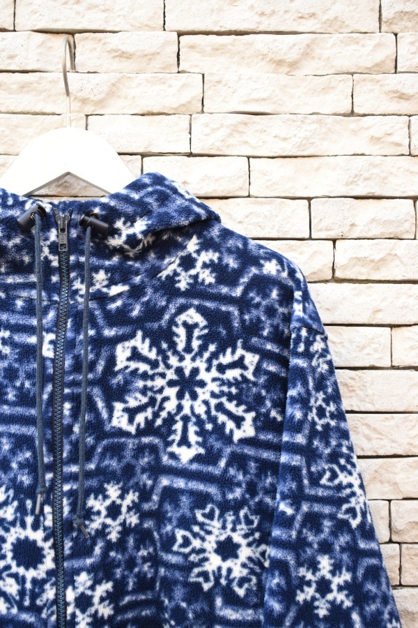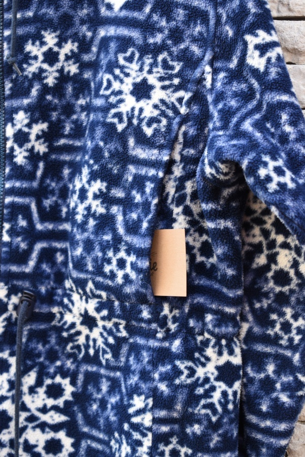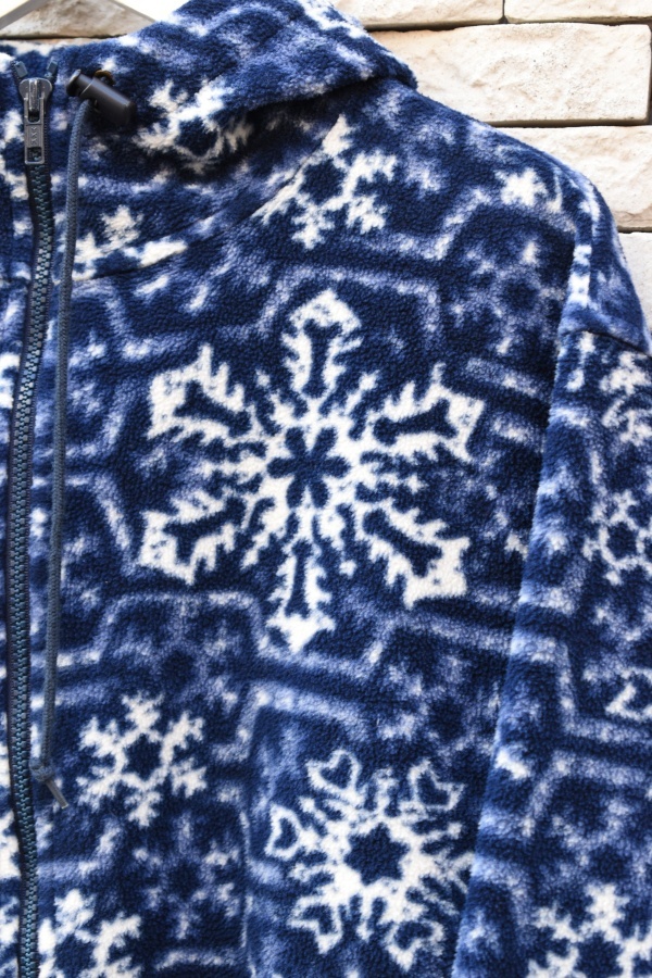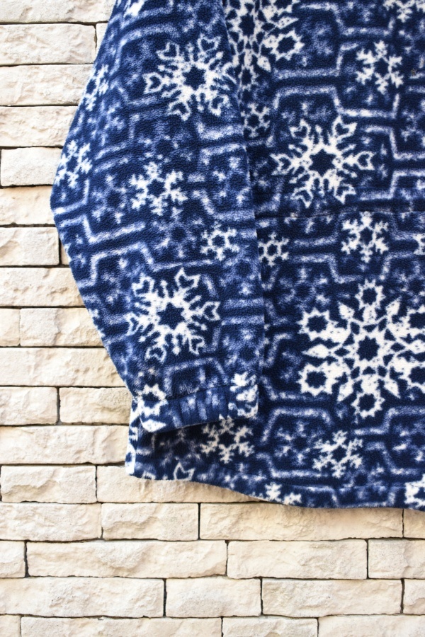 ネイビーをベースに様々な大きさの雪の結晶が全体にあしらわれたアウトドアブランドらしいデザイン。