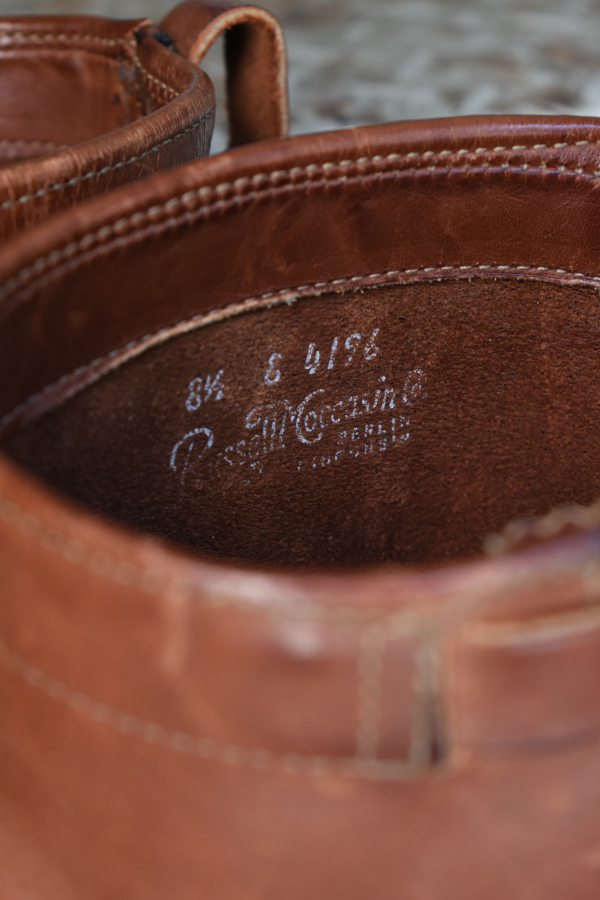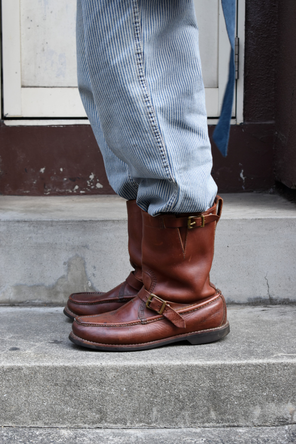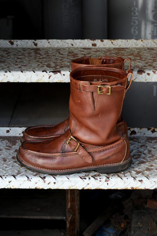 100年以上続くアメリカの老舗ブーツメーカー、ラッセルモカシンの青タグの付く70年代頃のモノでございます。